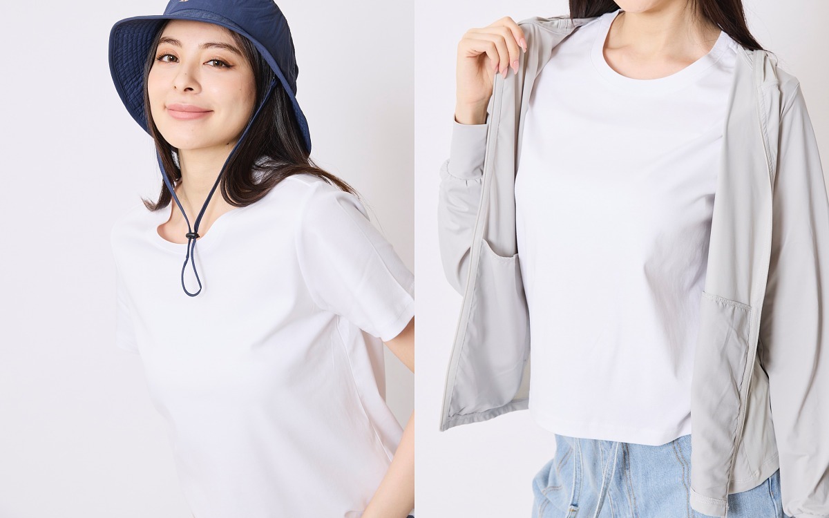 有V領及圓領2種設計。Q-MAX 0.204 清爽降溫舒適;高彈性纖維,吸濕透氣;超輕量材質,穿著柔軟舒適。