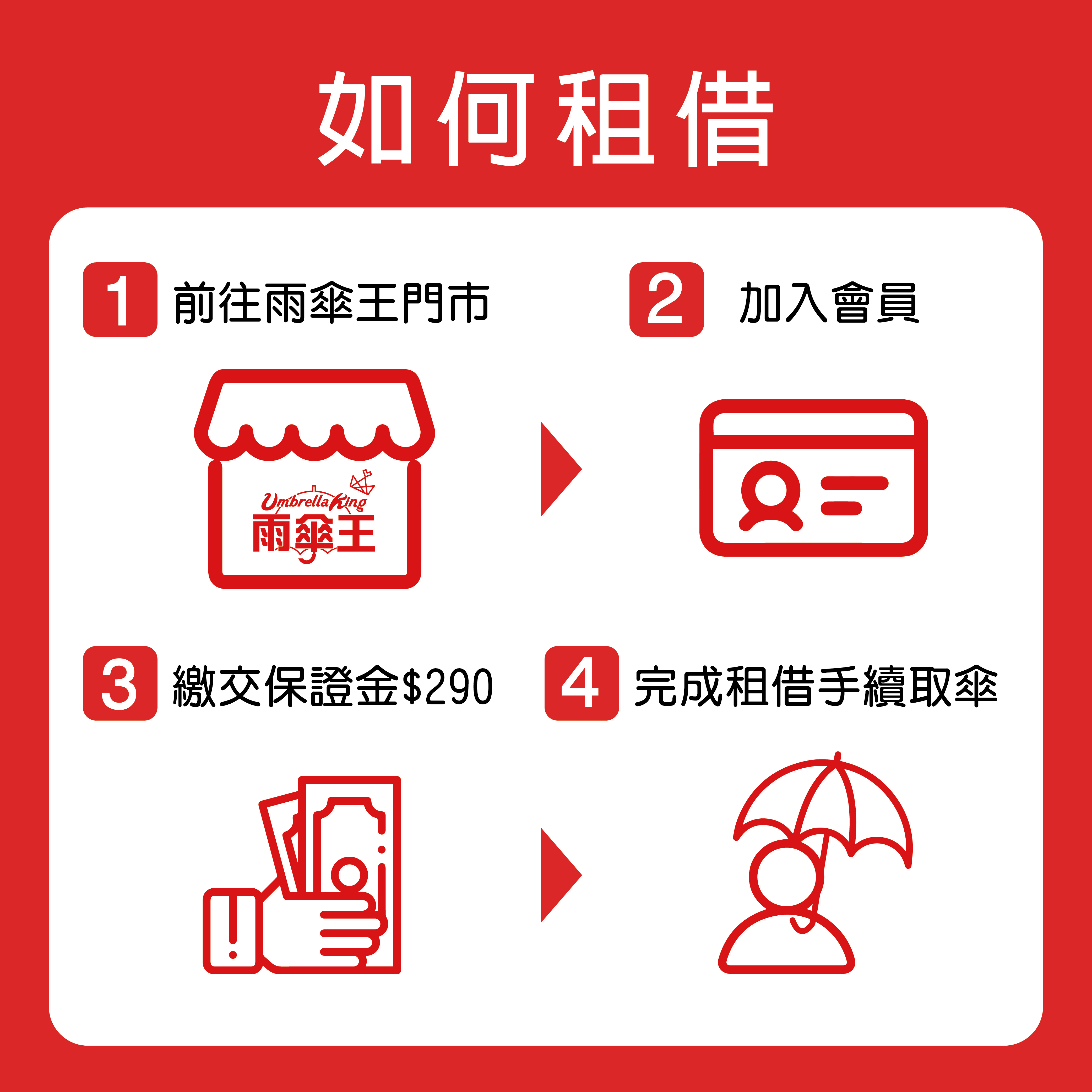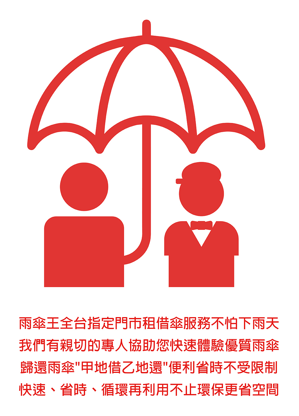 我們致力於為您提供最快、最方便的租傘服務。對於臨時需要用傘的旅客、商務人士、極為便利的服務
