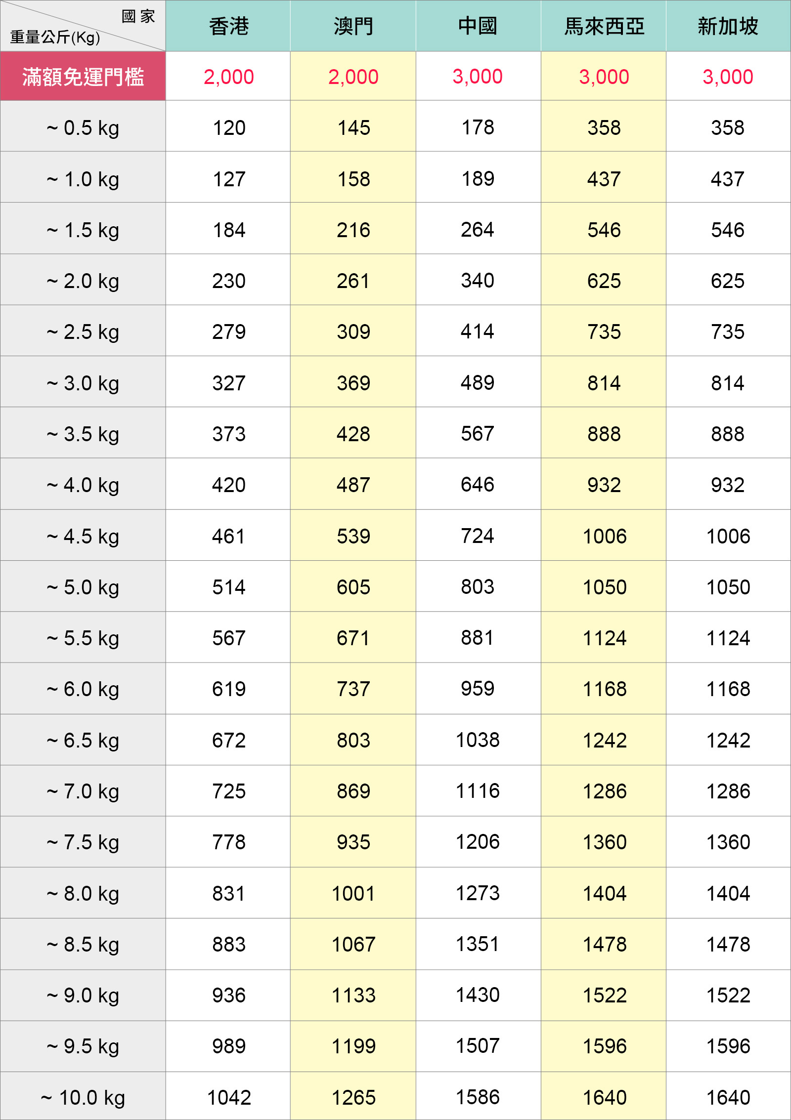 運費採用順豐官網所提供之重量表金額加上包材等燃料稅。寄送中產生關稅需自行負擔,若您下訂即認同此計算方式。