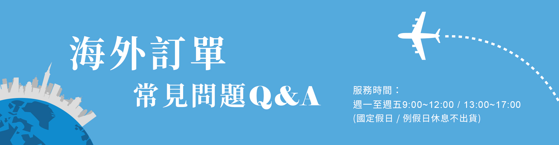 海外地區使用航空或海運配送。(到貨時間約14個工作天內,不可抗力因素可能導致延遲。)