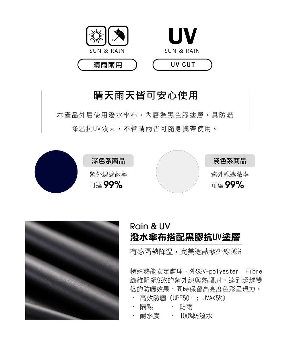 ☂抗曬黑膠有感降溫,全方位99%遮蔽紫外線