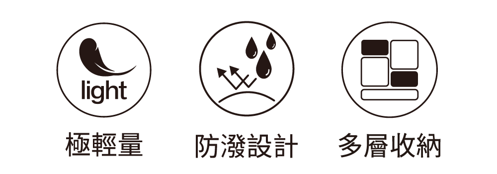 ☂結構輕巧150g且有多層分類收納(附隱藏式暗袋)
