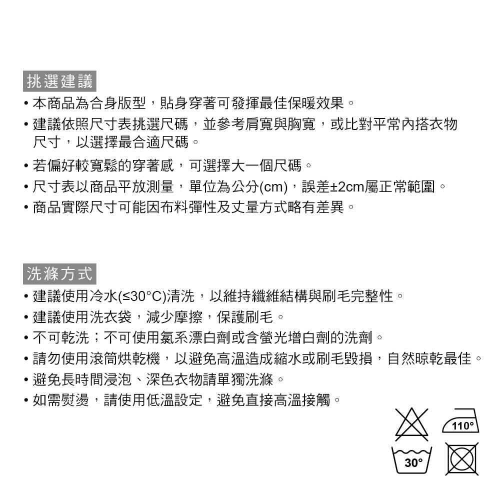 版型特色:內層刷毛,觸感細密、保暖穩定