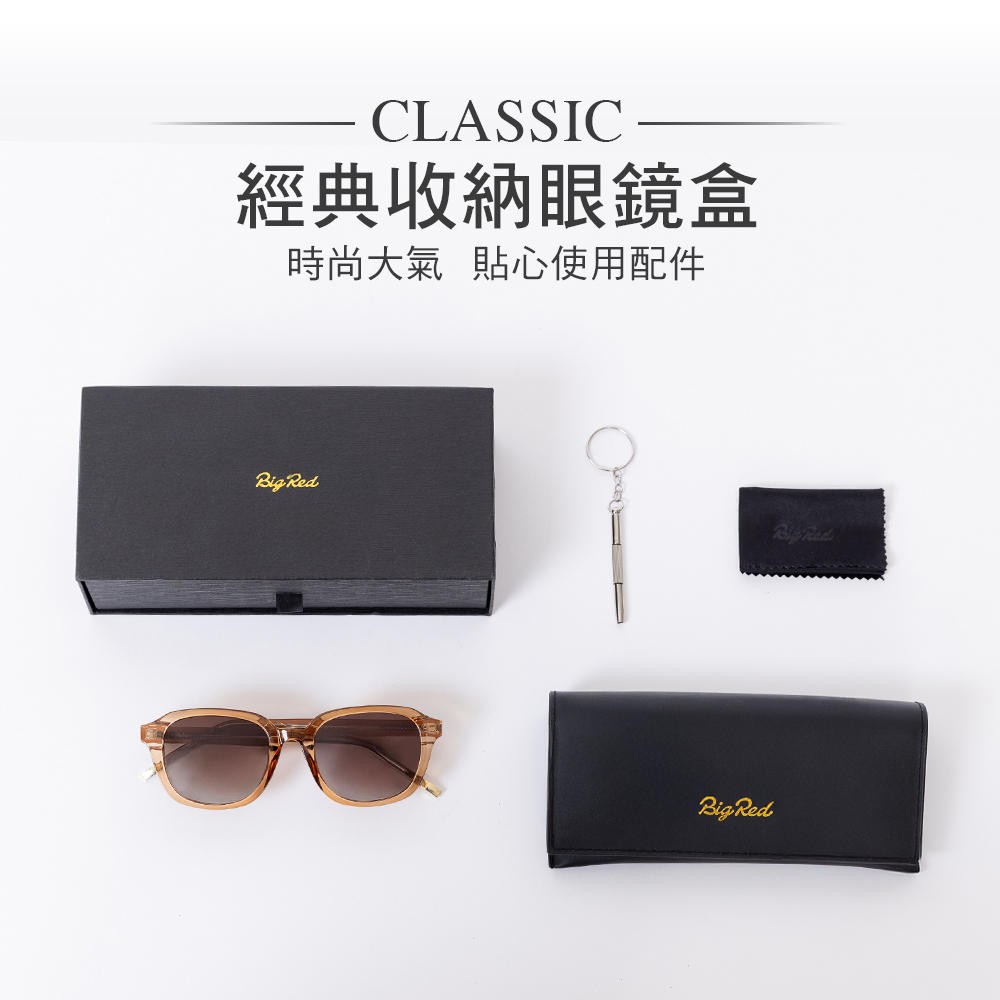 ・包裝配件:硬殼收納盒、收納包、擦拭布、迷你螺絲起子、偏光測試小卡。