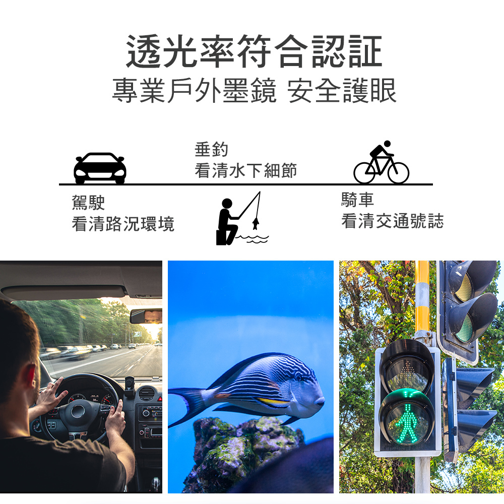 ・強化1.1mm偏光鏡片,有效抗UV與反射