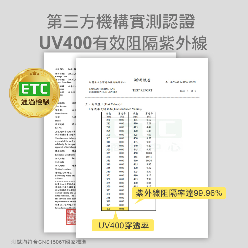 ・UV400檢測合格,有效阻擋99%紫外線