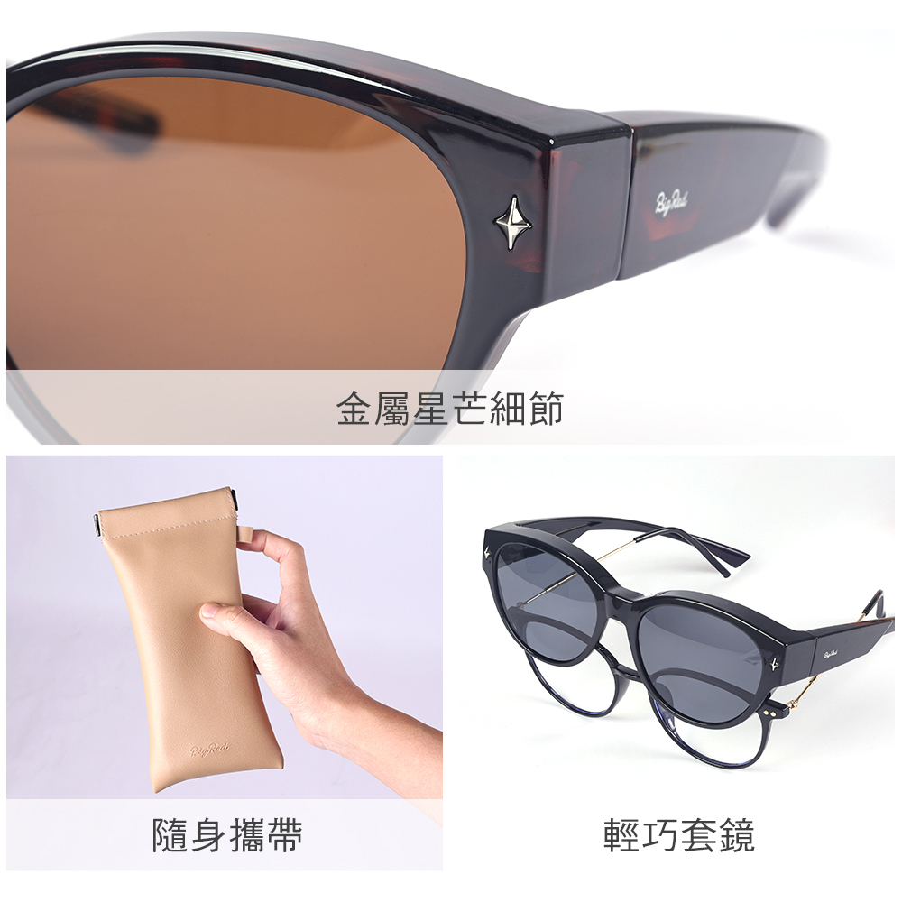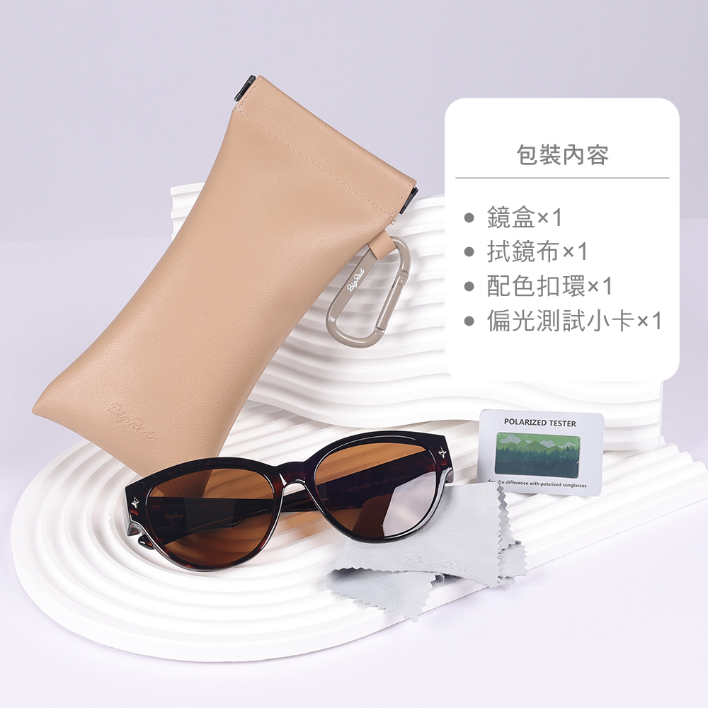 .包裝配件:鏡盒、拭鏡布、配色扣環、偏光測試卡