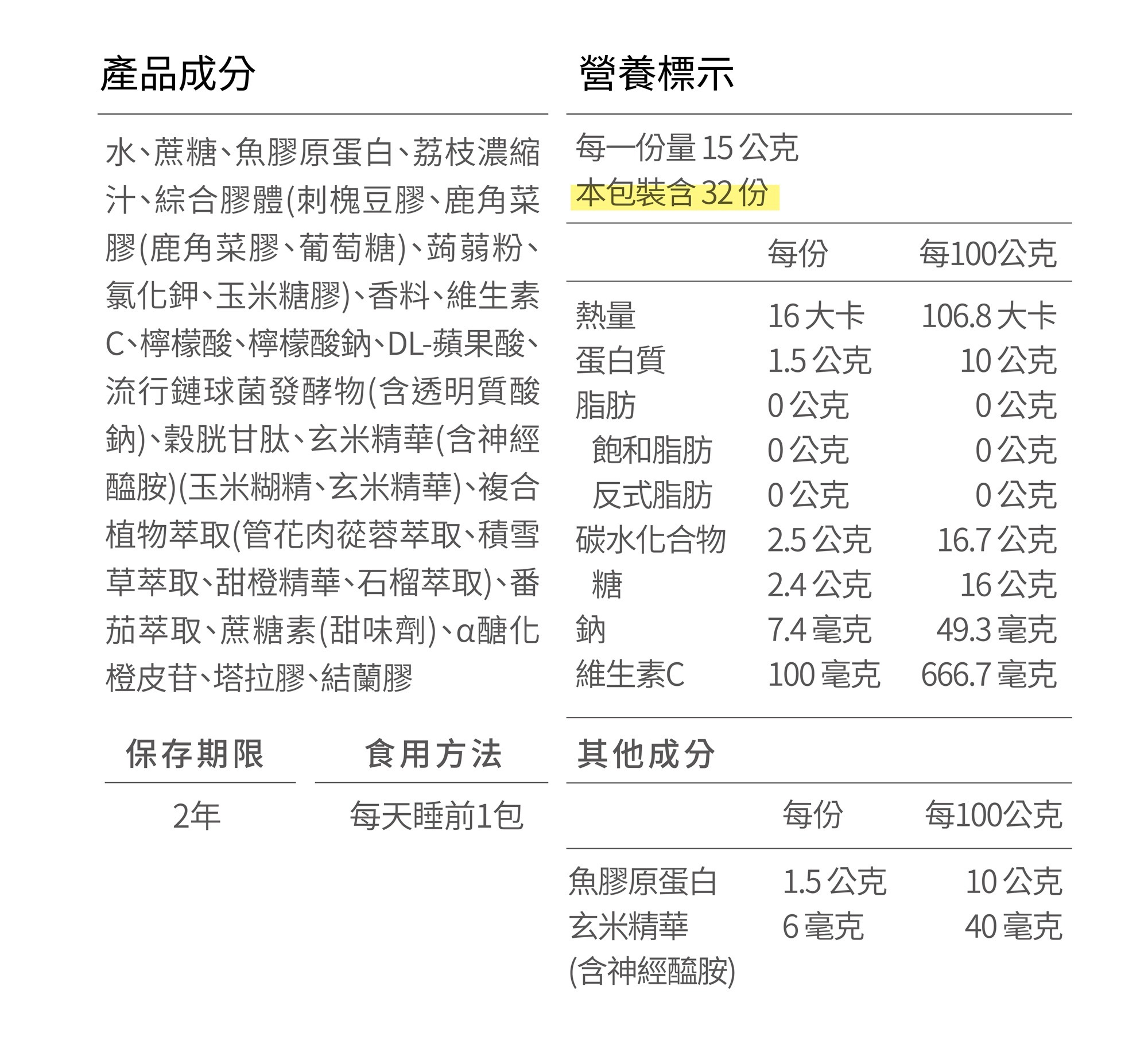 32包/盒/月,1天1包,每月分享給1位朋友與你一起青春美麗