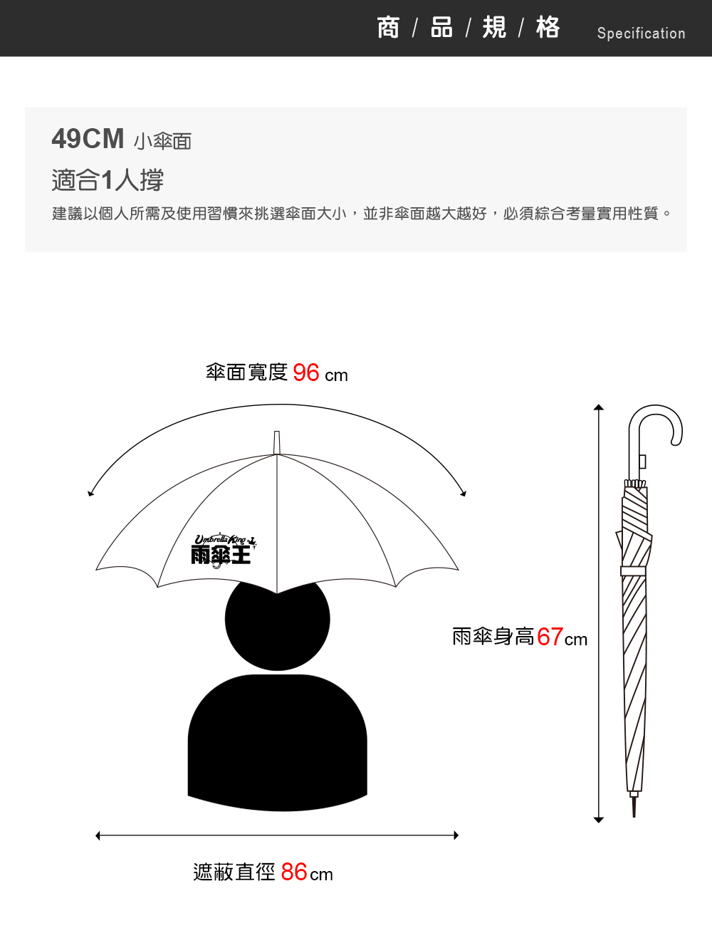雨傘尺寸:49CM自動直傘(19吋)