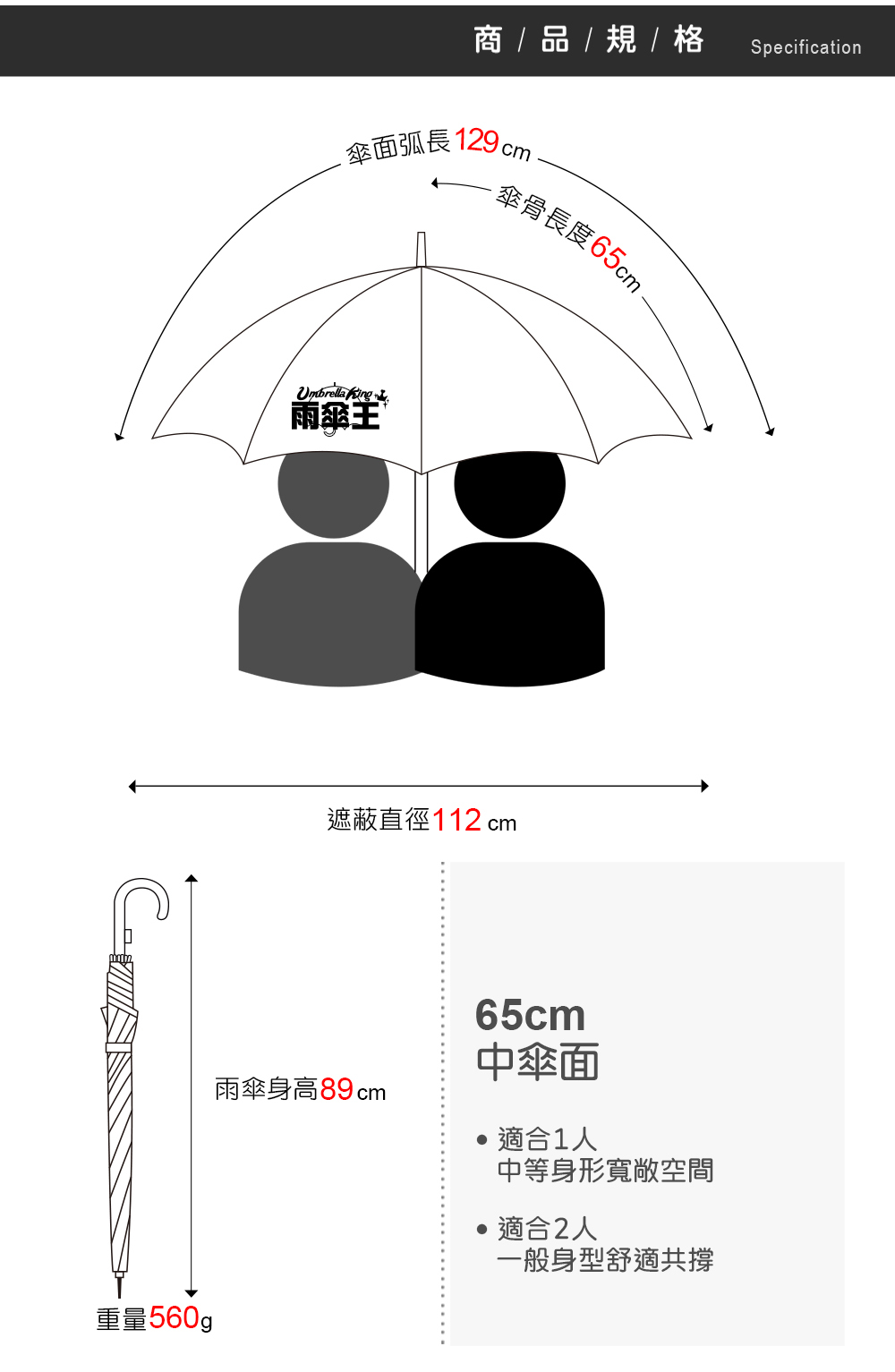 ☂65CM大傘面直傘,16支傘骨超抗風