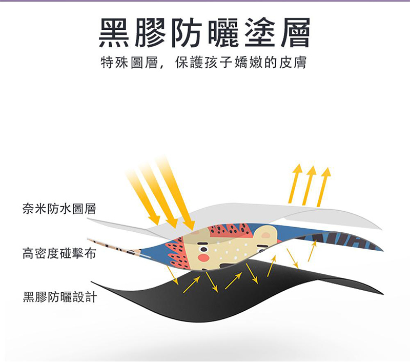 ☂黑膠防曬,保護孩子細嫩的皮膚