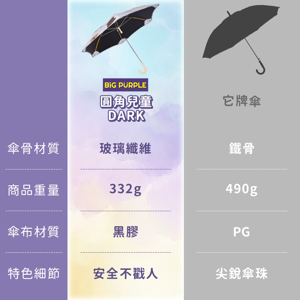 《BigPurple 圓角兒童DARK》54CM手開直傘