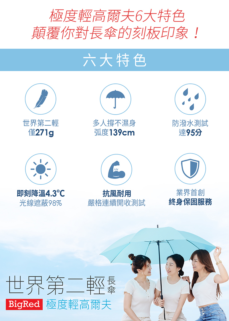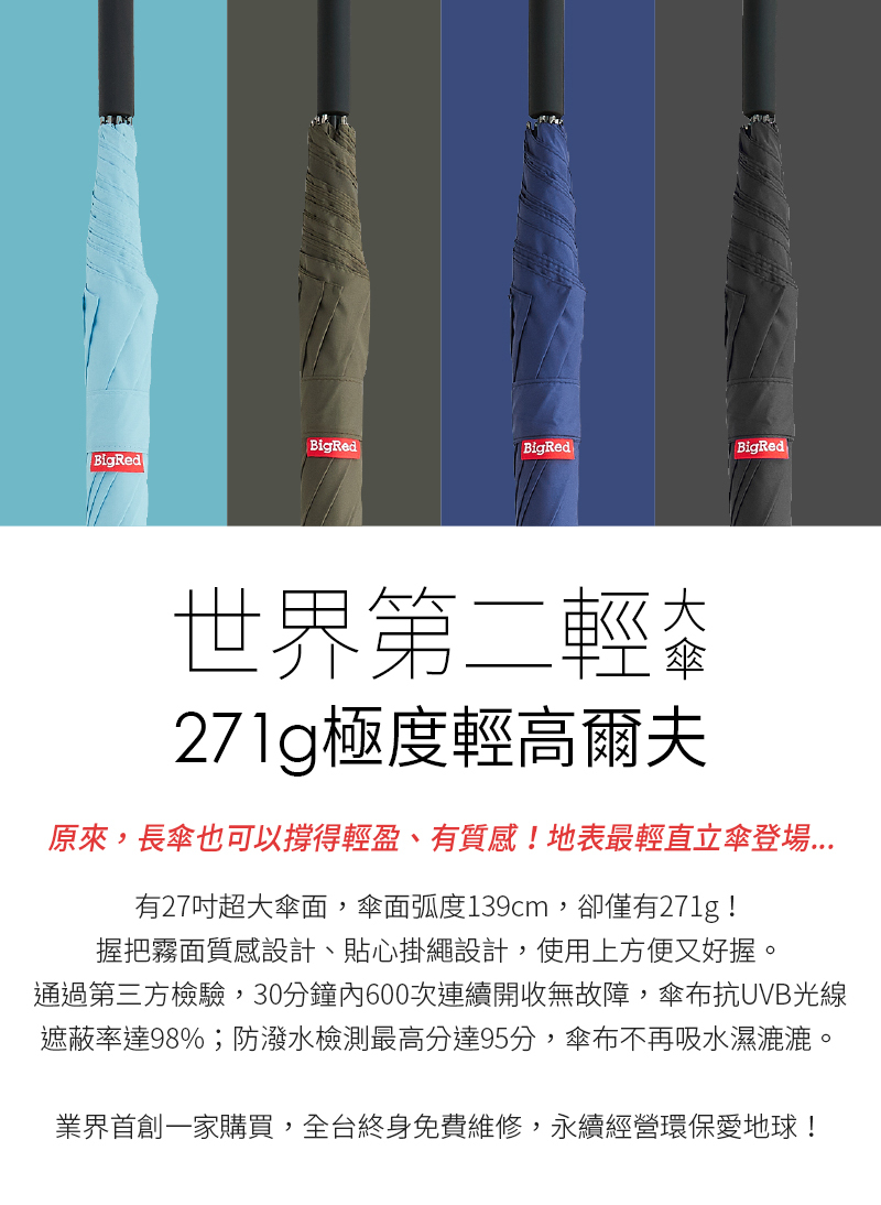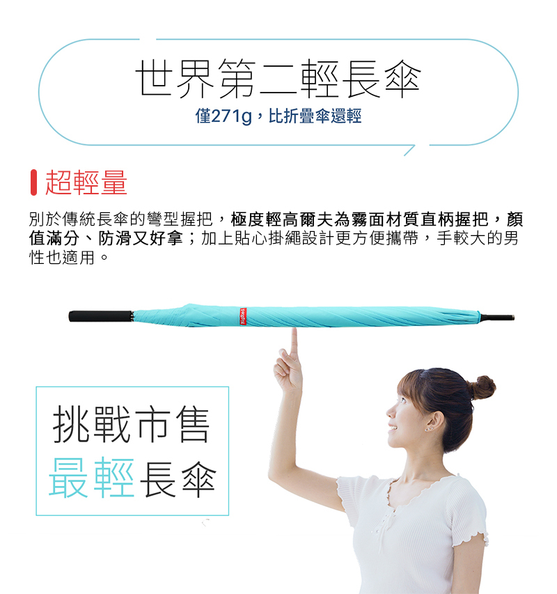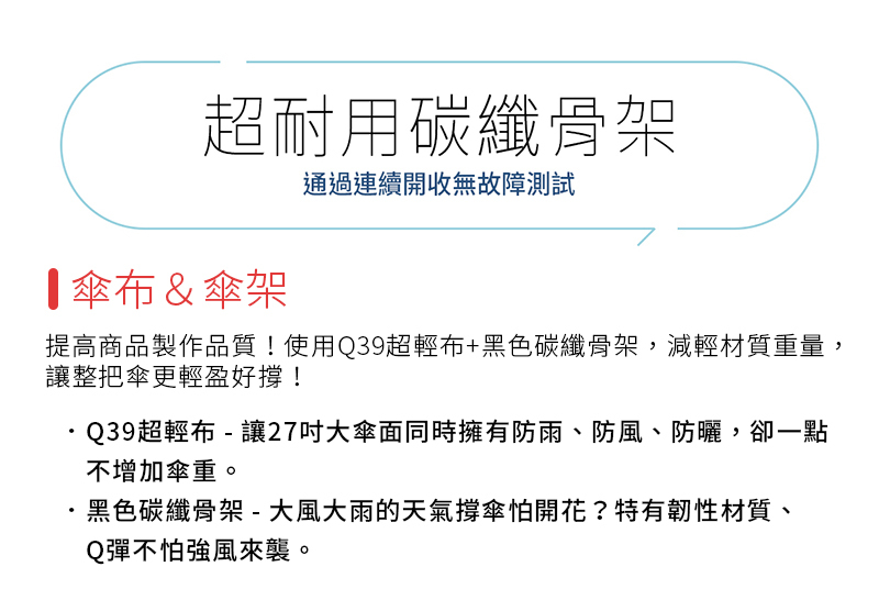 ☂超輕布設計,超耐用碳纖骨架,重量僅271g