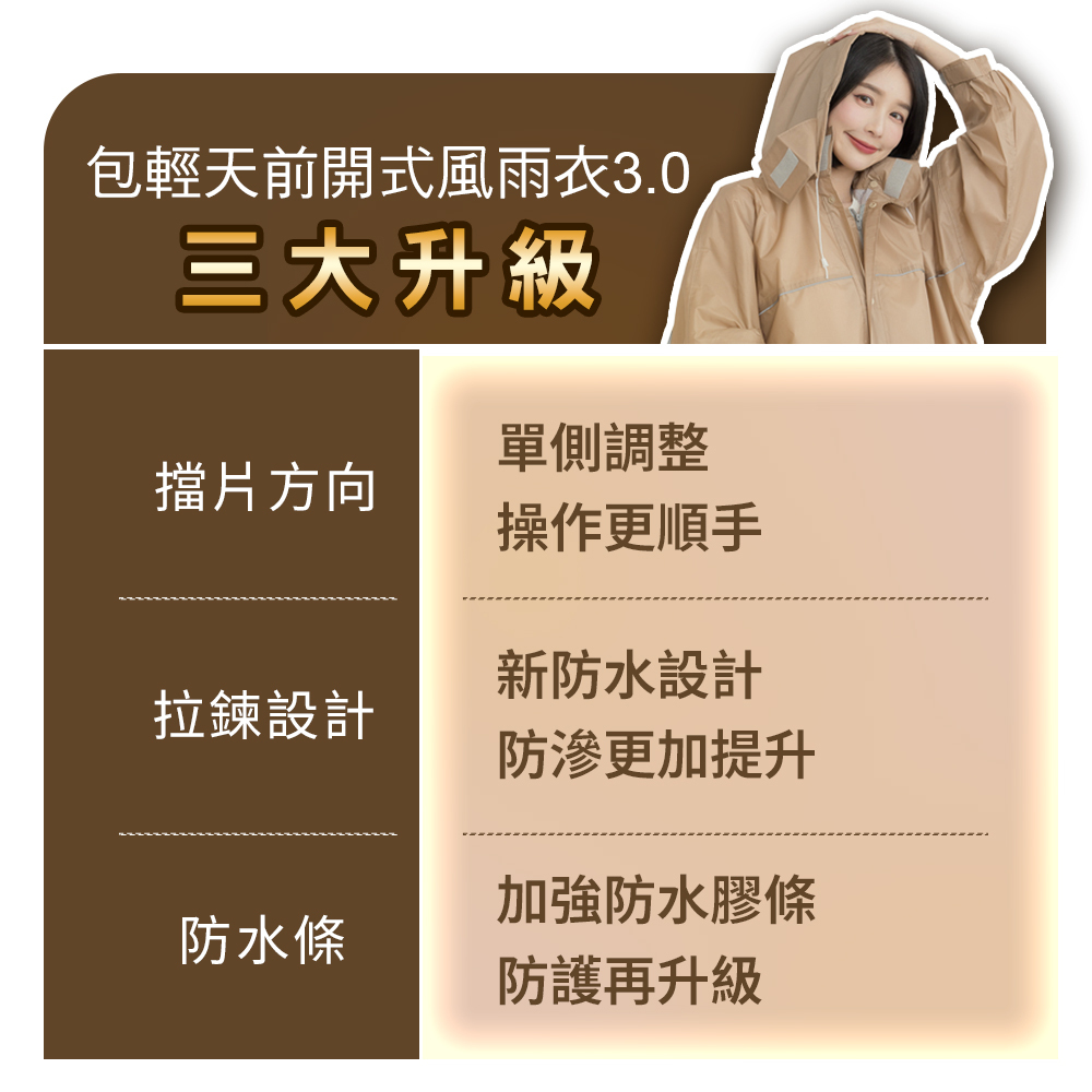 ☂分離式雨帽,頸部領圍防水