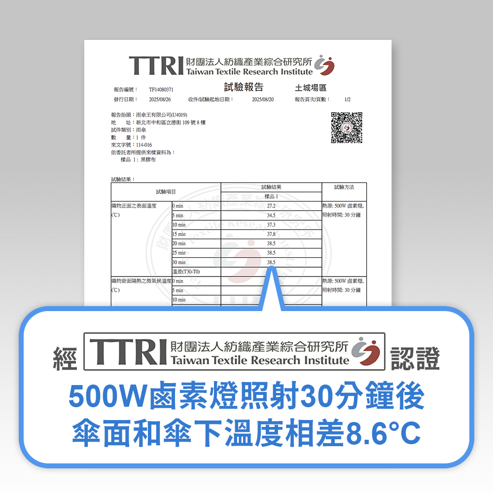 ☂通過第三方檢驗證實,擁有超頂規UPF50+、能有效降溫8.6℃!