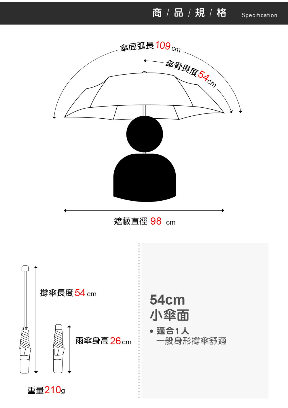 ☂54CM(21吋)一人撐,遮陽擋雨一把罩
