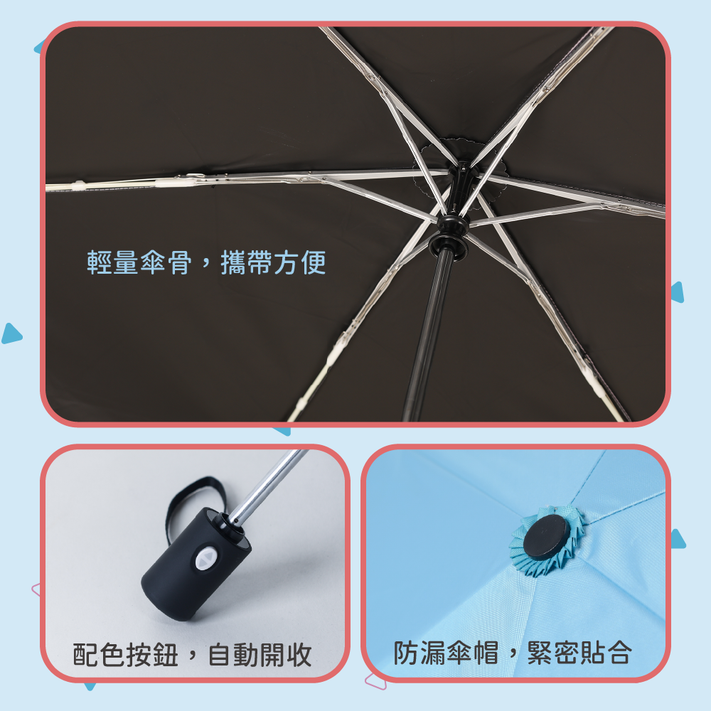 ☂配色按鈕握把設計,自動折傘一鍵開收