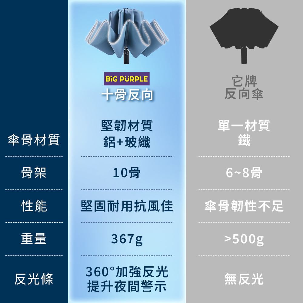 ☂十骨堅固,反向防風骨架,抵抗強風