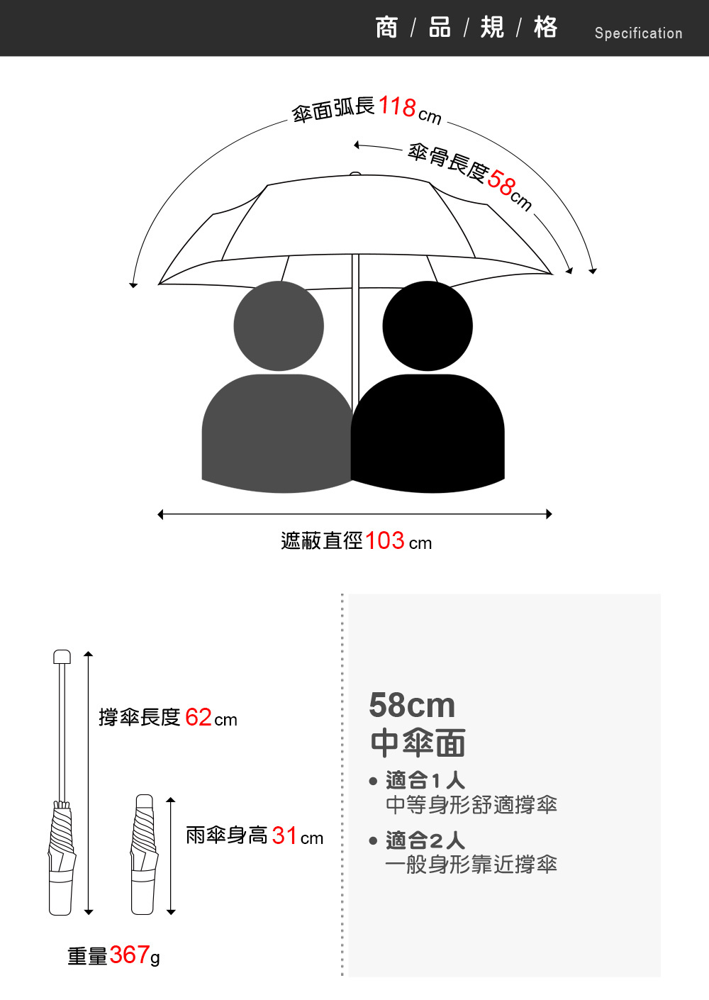 雨傘重量:367g ± 5%