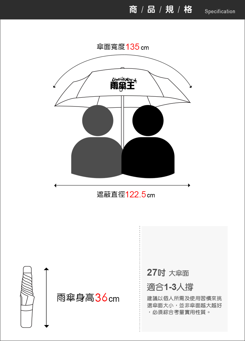 ☂27吋大反骨自動折傘,傘下直徑122.5cm