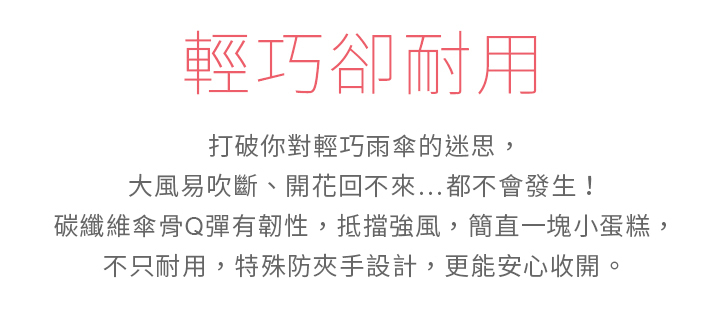 ☂碳纖維傘骨材質,超輕抗風耐用超堅固