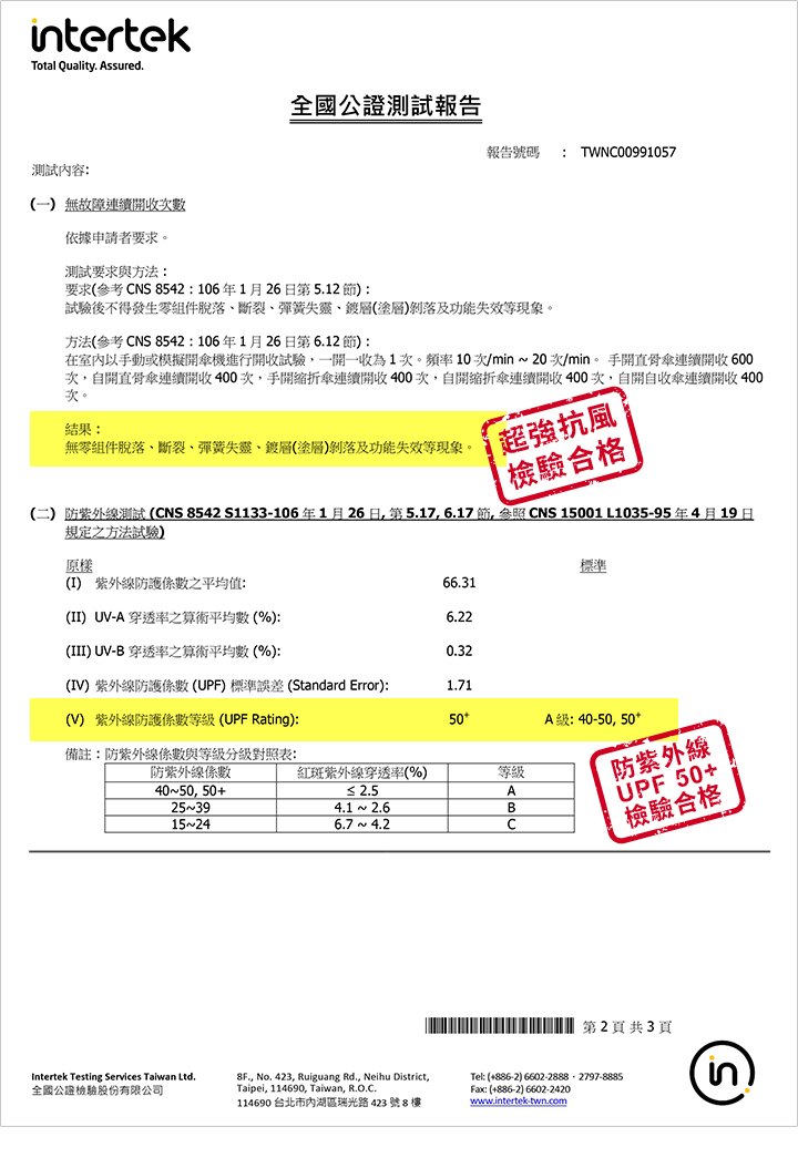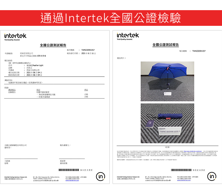 ☂經過第三方專業檢驗Intertek全國公證認證!