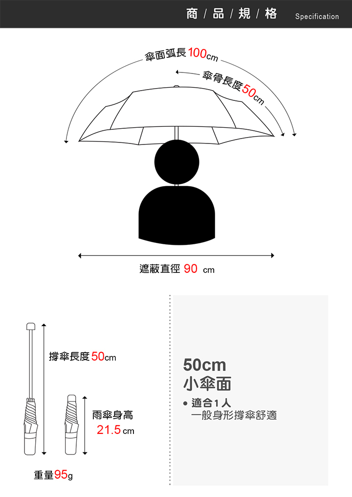 ☂輕量1人稱手開傘,重量只有95g