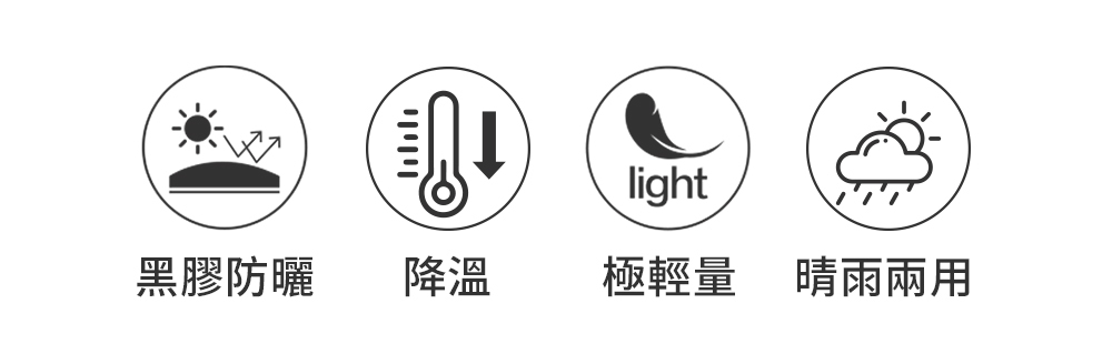 ☂拒絕豔陽曝曬,使用超輕量黑膠布降溫防曬