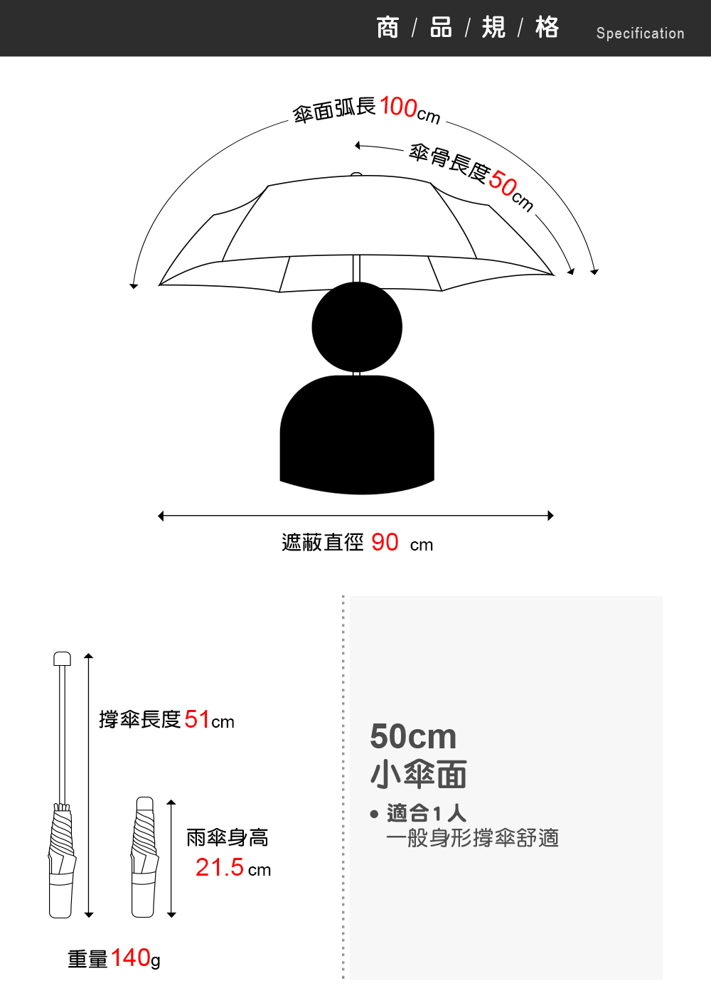 ☂50cm(19吋)手開摺疊傘,一人使用剛剛好