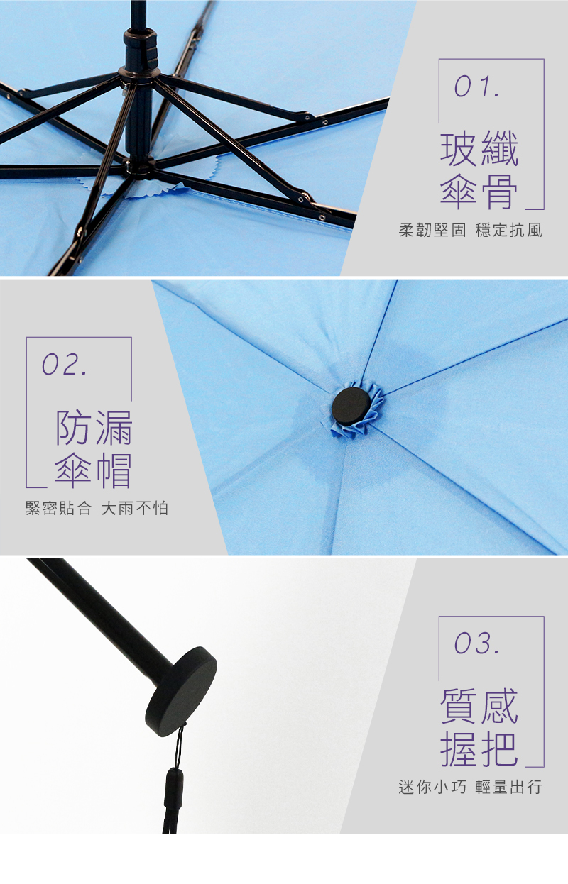 ☂彈性碳纖維傘骨,堅韌卻輕盈