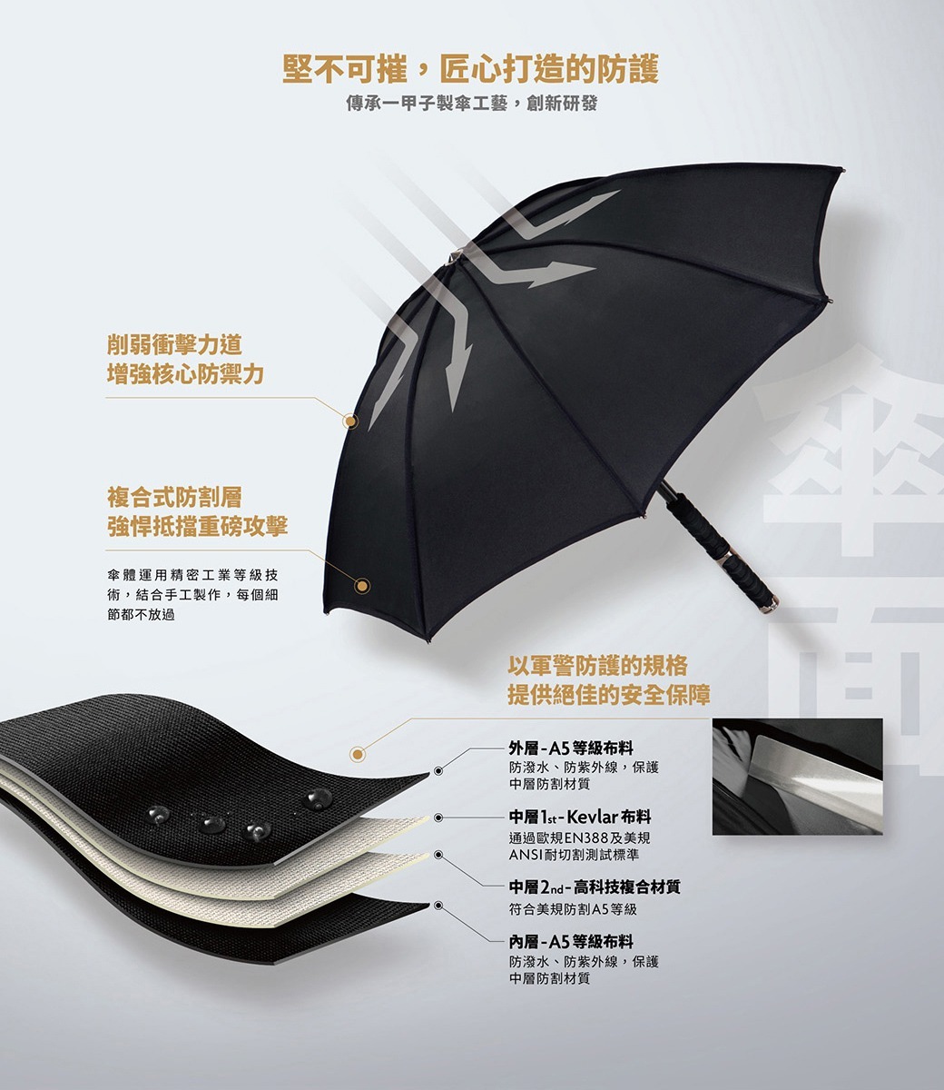 ☂獨特「凱夫拉爾纖維」,抵抗穿刺防刀割
