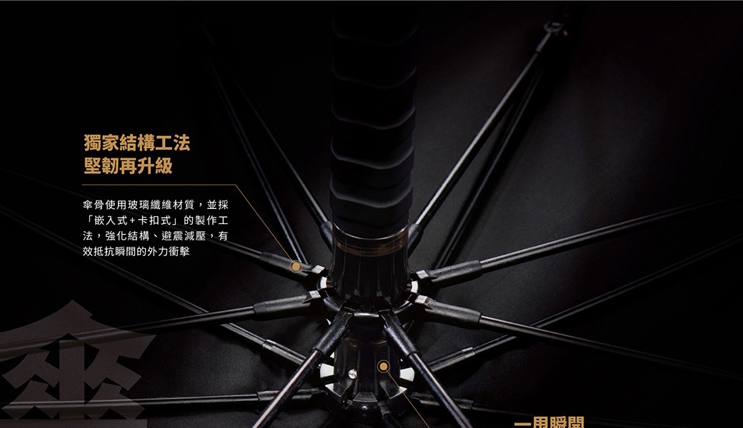 ☂玻璃纖維打造彈性傘骨,堅韌不易變形
