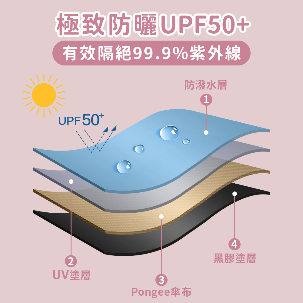 ☂頂規防曬雙重認證,超輕量黑膠布UPF50+,有效降溫8.1℃!