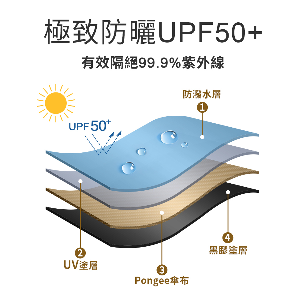 溫馨提醒:因傘布印刷或顏色深淺透光度不同,為達相同遮陽效果,膠料塗層厚度而產生重量些許差異。