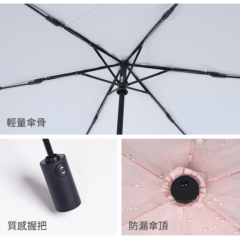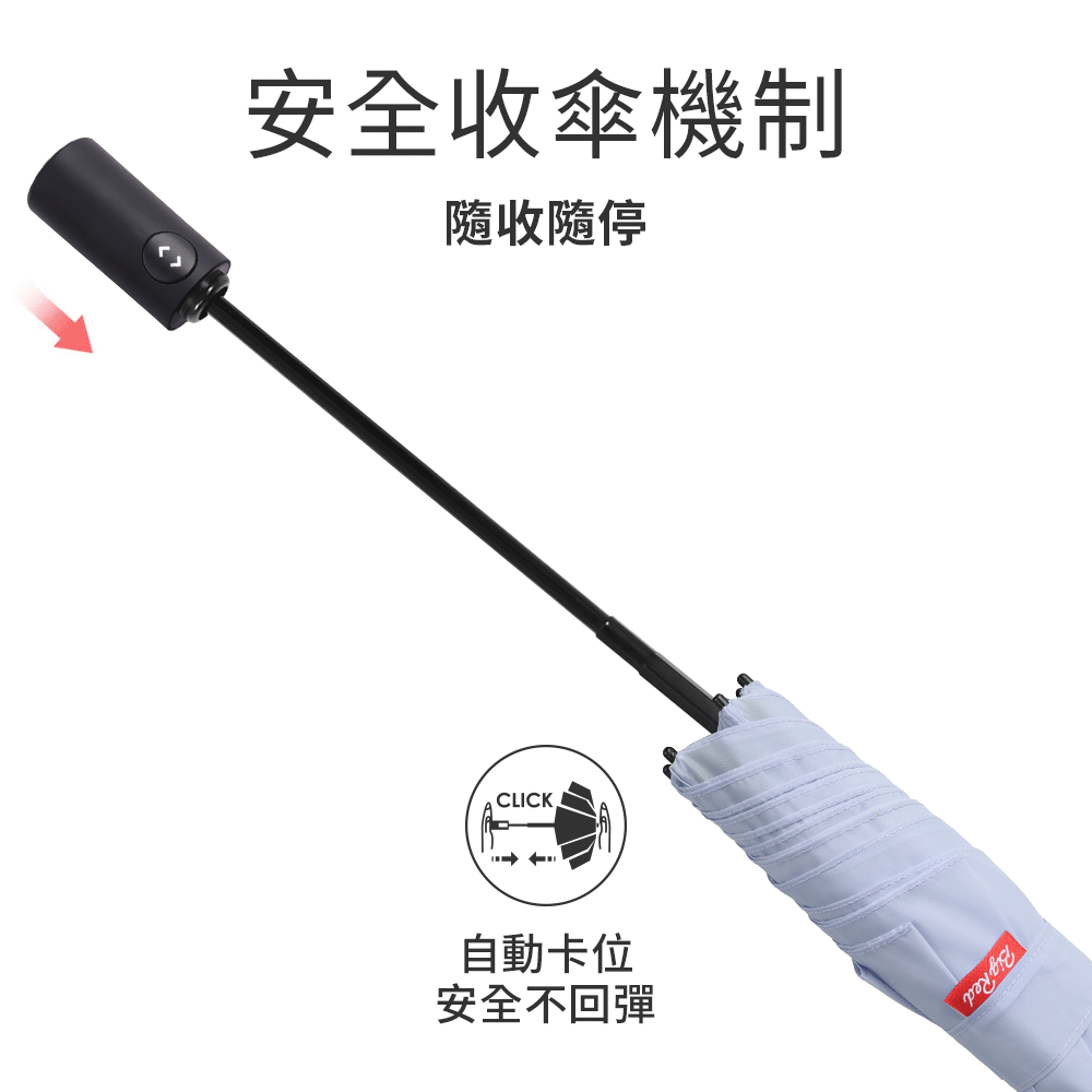 主要功能:遮陽、擋雨、抗UV、防風、防潑水、自動開手動收、安全收傘機制