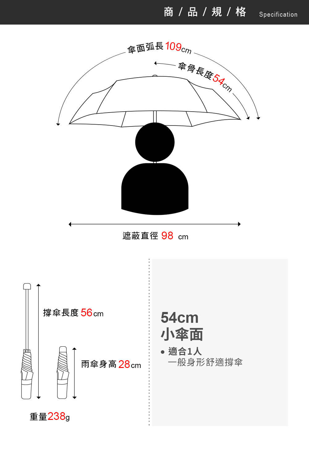☂54CM(21吋)一人撐,艷陽下雨一傘搞定!