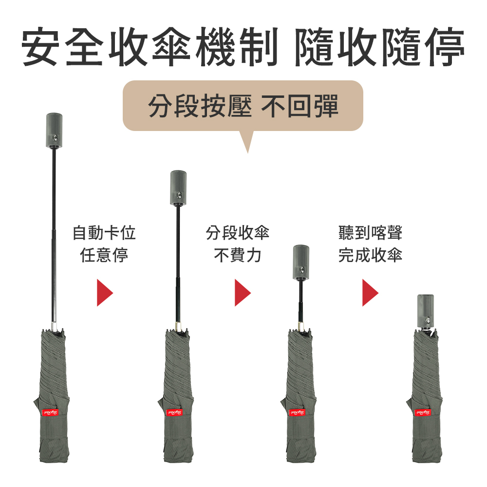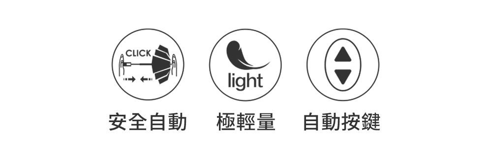 主要功能:超輕、防風、擋雨、手開、防曬、遮陽、安全自動開收(中柄手動壓回)