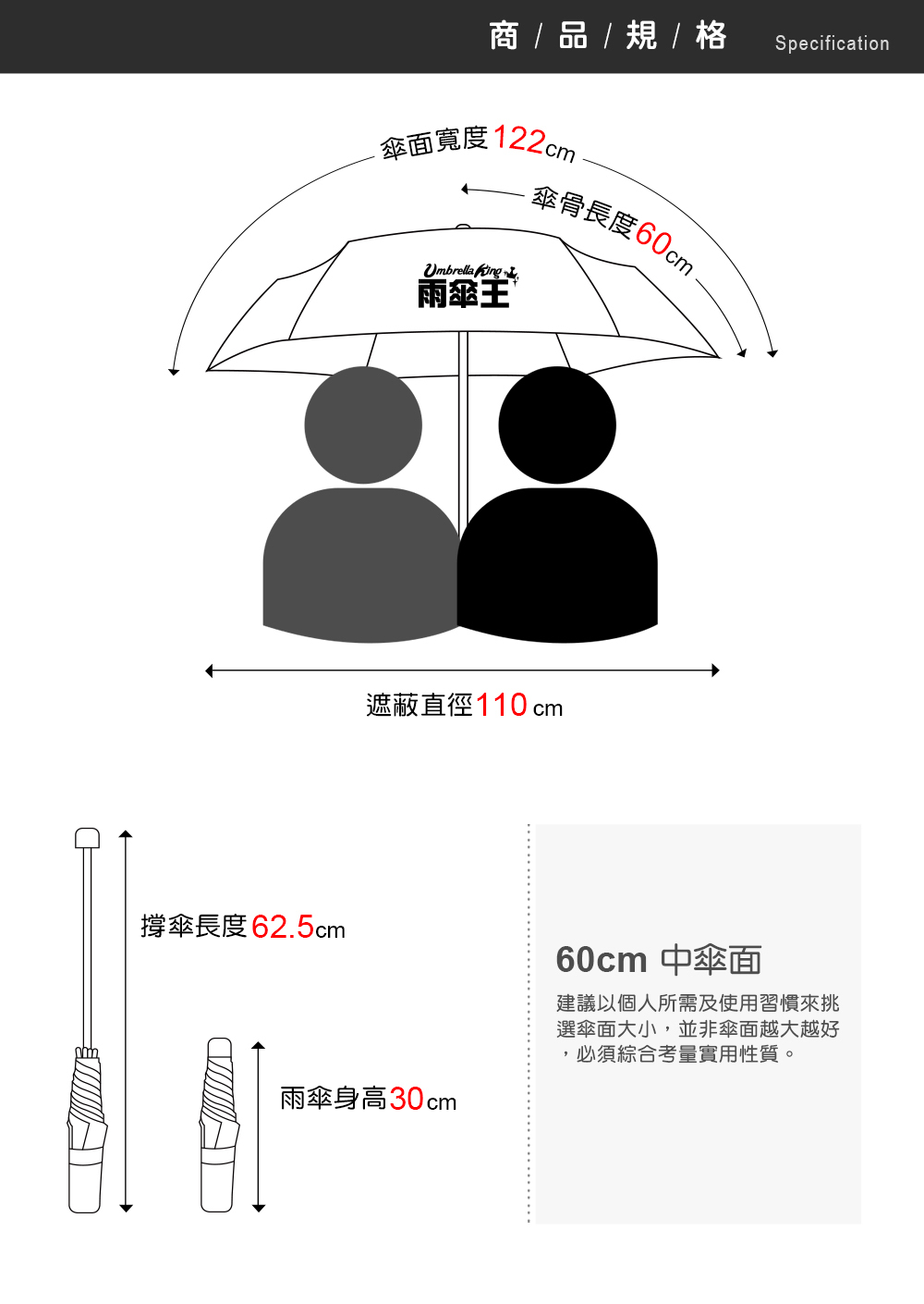 撐傘長度:62.5cm ± 2cm