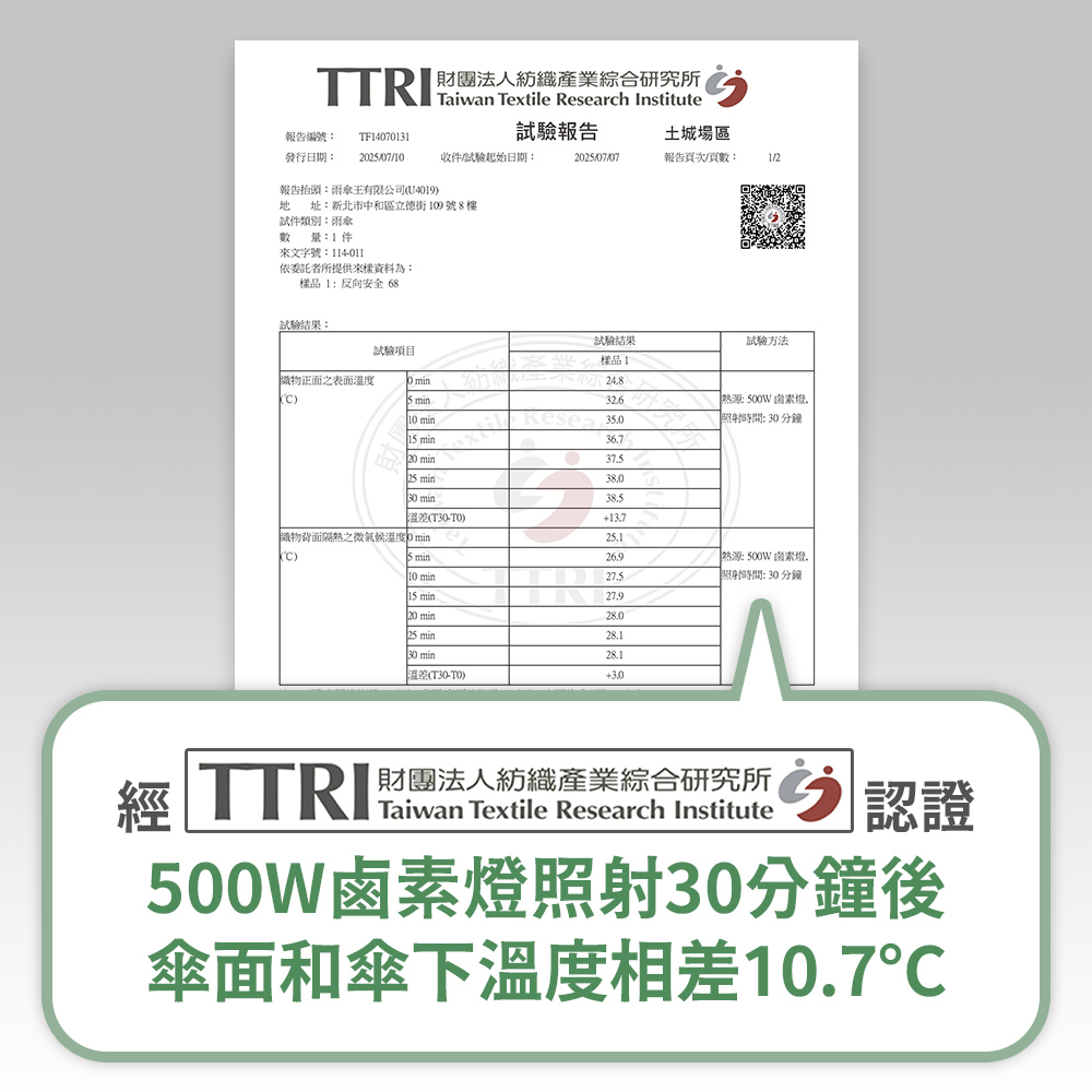 ☂通過第三方檢驗證實,擁有超頂規UPF50+,能有效降溫10℃