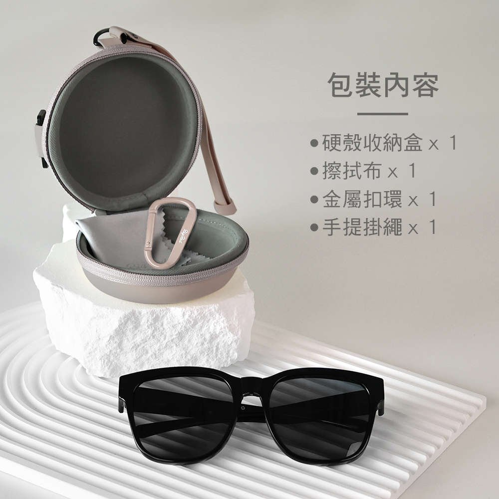 .包裝配件:硬殼收納盒(米色)、擦拭布、金屬扣環、D型掛勾、手提掛繩、彈性固定帶各一。